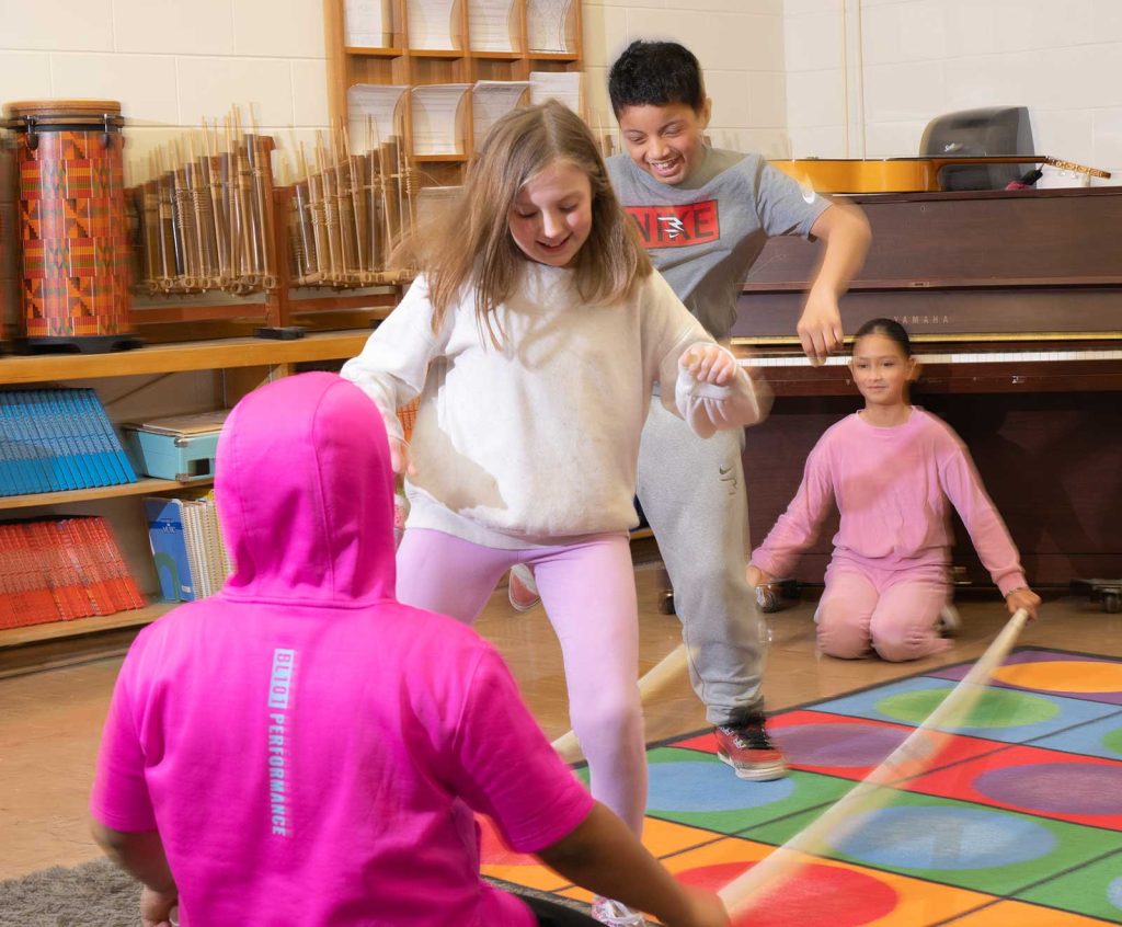 As part of Badger’s arts-integrated approach, lessons don’t stay in one lane. Tinikling was part of both music and physical-education units, using jump bands in place of poles.